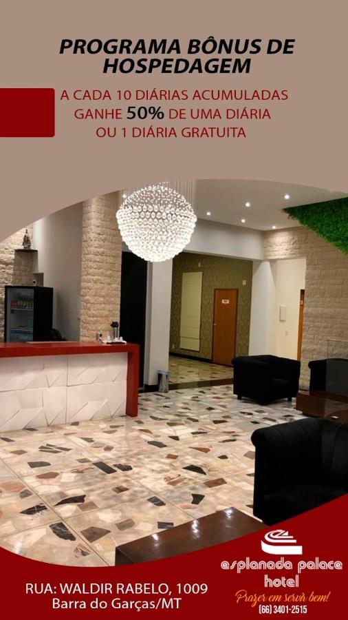Esplanada Palace Hotel fica em Barra do Garças. Com lounge compartilhado, este hotel 2 estrelas tem quartos com ar-condicionado, Wi-Fi grátis e banheiro privativo. A acomodação oferece serviço de quarto, uma recepção 24 horas e serviço de organização de passeios. Neste hotel, os quartos contam com guarda-roupa. Os quartos estão equipados com mesa de trabalho e TV de tela plana, e certas unidades neste hotel contam com varanda térrea. Neste hotel, cada quarto tem roupa de cama e toalhas. O Aeroporto de Aeroporto de Barra Do Garças fica a 17 km de distância.