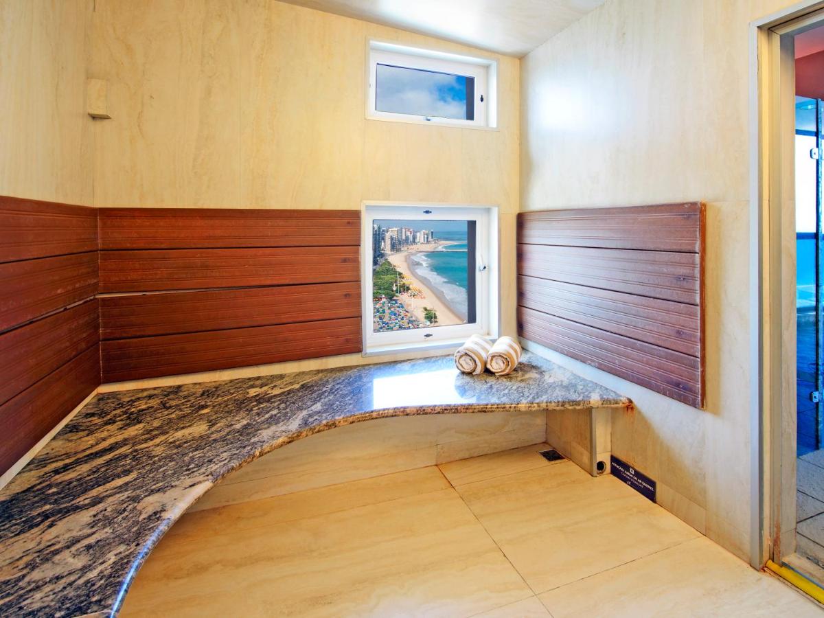 Neste hotel de Fortaleza, você pode desfrutar da banheira de hidromassagem e piscina ao ar livre na cobertura enquanto contempla a vista da Praia do Meireles, situada do outro lado da rua. O Wi-Fi é gratuito em todos os ambientes. O hotel 5 estrelas Seara Praia Hotel oferece quartos com ar-condicionado, TV de tela plana com canais a cabo, frigobar e cofre. O banheiro privativo dispõe de chuveiro, produtos de banho gratuitos e secador de cabelo. Algumas suítes têm banheira de hidromassagem. Você pode relaxar na sauna ou na banheira de hidromassagem da cobertura ou saborear suas bebidas favoritas no bar da piscina. Quanto às opções gastronômicas, o Seara Praia serve buffet de café da manhã de cortesia todas as manhãs, além de especialidades regionais no almoço e jantar. O Seara Praia Hotel fica a 1,8 km da Praia de Iracema e a 10,1 km do Aeroporto Internacional de Fortaleza - Pinto Martins.